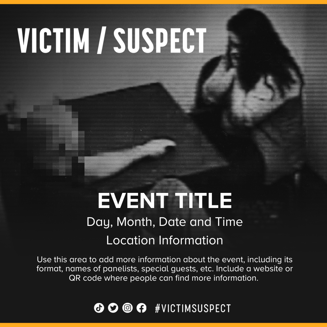 Customize the posts below with your event details, including web URL where people can learn more and RSVP. Want the film’s social accounts to help amplify your posts? Make sure to tag us and use #VictimSuspect, when appropriate.