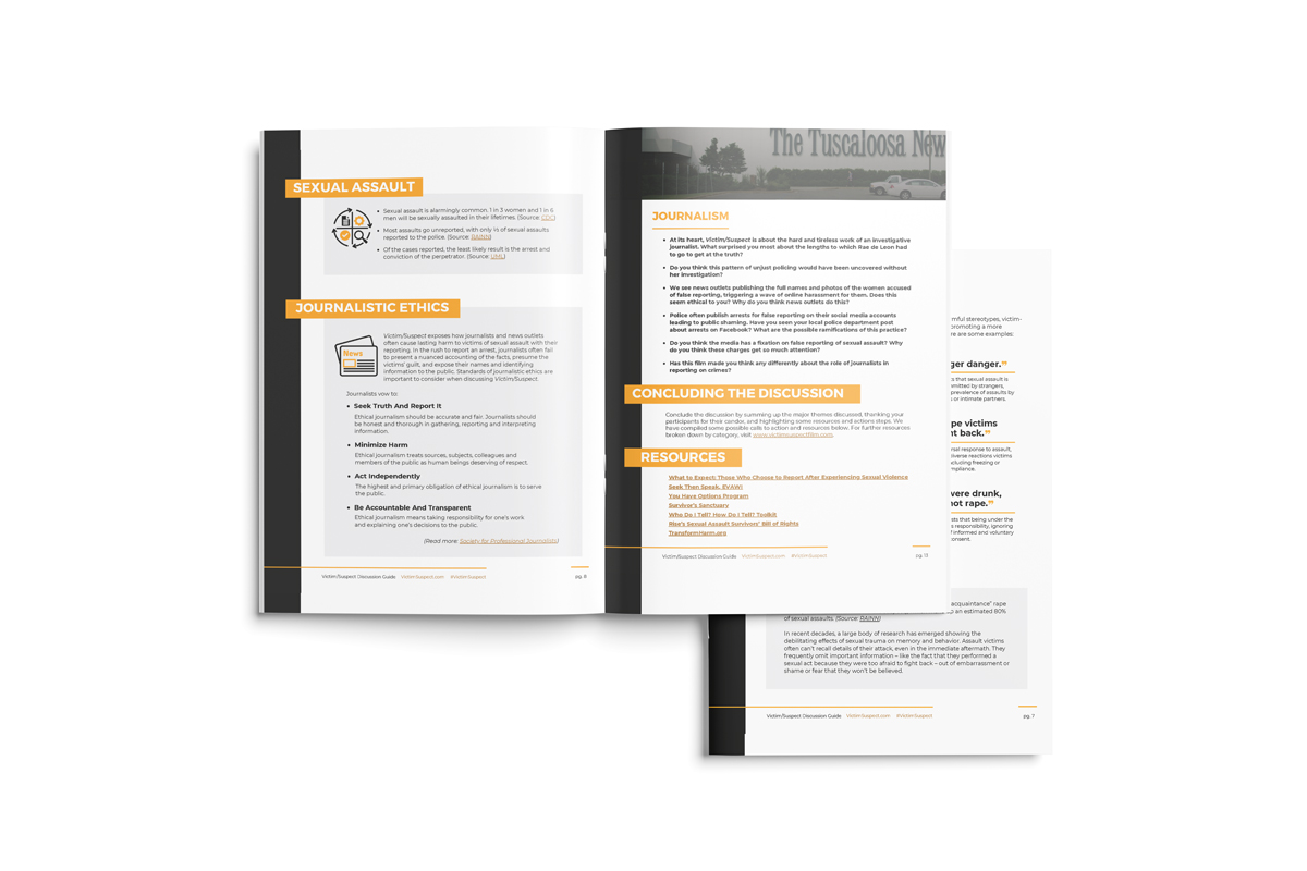 Developed for screenings of the documentary Victim/Suspect and conversations that follow, our discussion guide equips audiences with tools to confront the troubling reality of sexual assault survivors being criminalized after reporting. Featuring thematic questions, background on rape myths, and strategies for trauma-informed conversation, it’s designed to foster honest dialogue, challenge harmful biases, and support systemic change in policing, journalism, and advocacy.